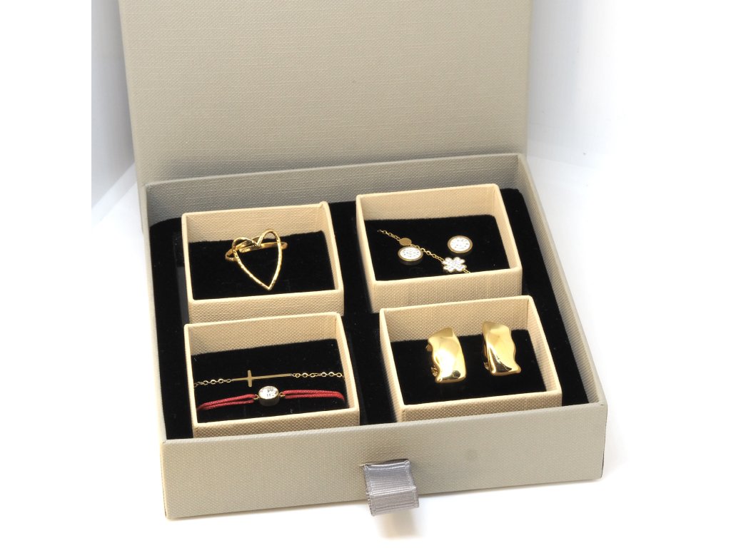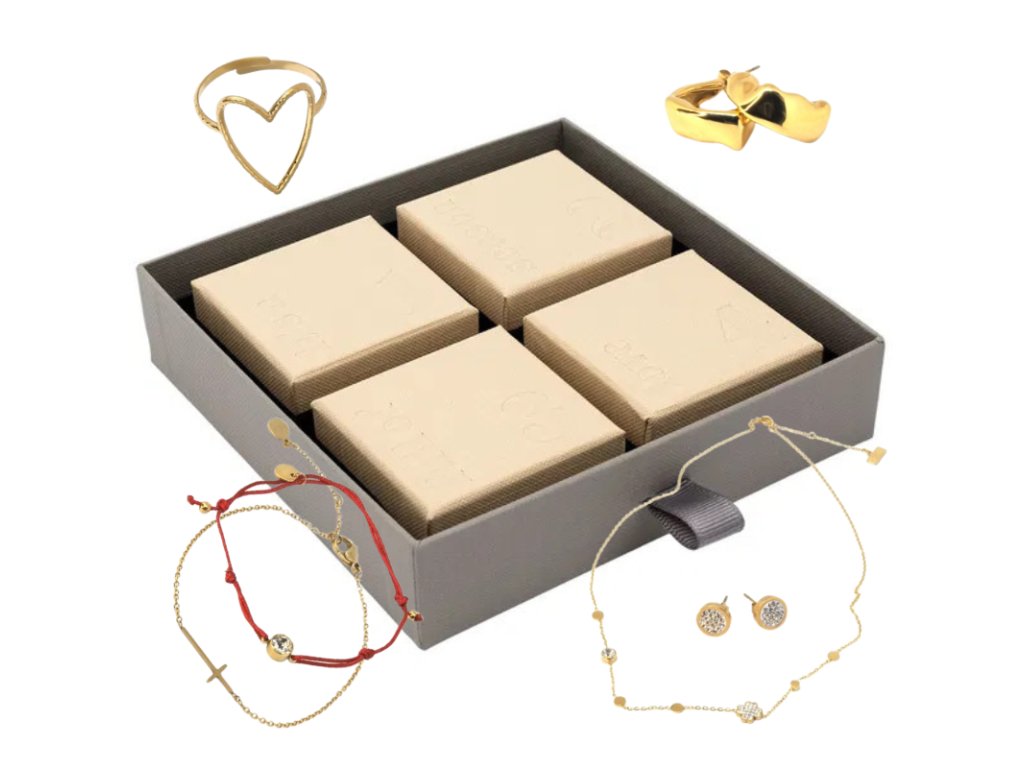 Náš vyšperkovaný adventný kalendár pôsobí luxusne a nadčasovo. Pevný box s vysúvacím mechanizmom a v ňom 4 menšie očíslované krabičky, ktoré v sebe skrývajú originálne kúsky. Starostlivo sme ich vybrali tak, aby boli nositeľné v bežné dni a ľahko sa kombinovali s každým outfitom.