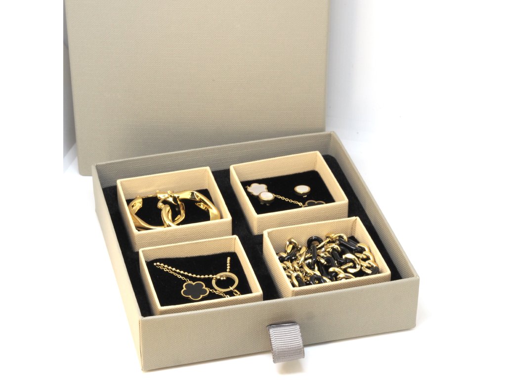 Náš vyšperkovaný adventný kalendár pôsobí luxusne a nadčasovo. Pevný box s vysúvacím mechanizmom a v ňom 4 menšie očíslované krabičky, ktoré v sebe skrývajú nádherné šperky. Starostlivo sme ich nakombinovali tak, aby sa v nich každá žena cítila krásna a dodali jej povestný glamour.