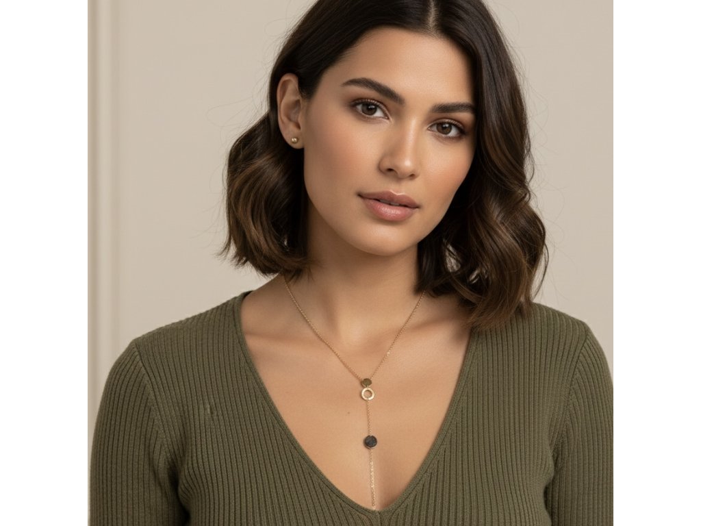 Štýlová aj na pláži? Dlhý náhrdelník s ozdobnými krúžkami je perfektným doplnkom k plavkám.