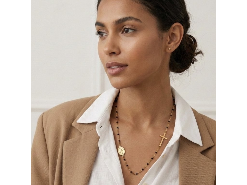 Sagrada v sebe spája niekoľko výnimočných prvkov. Čierne kamienky v retiazke a dva doplnky - madonna s krížikom. Umocňuje vieru a symboliku.