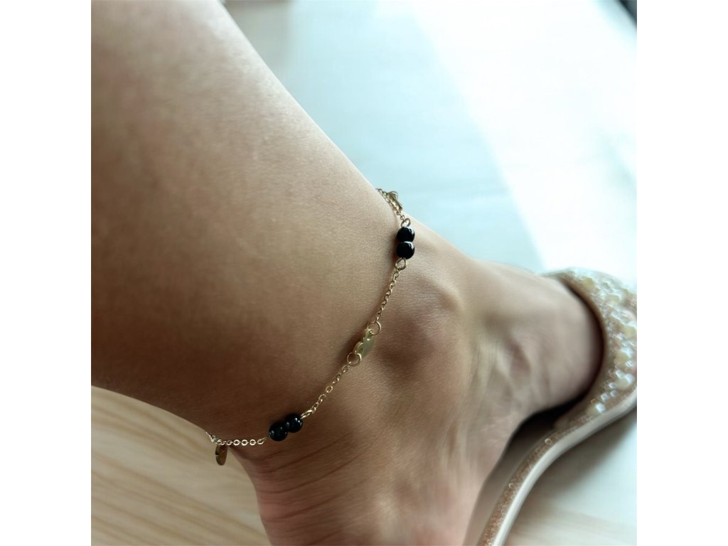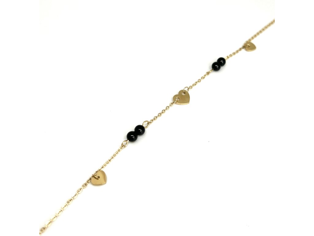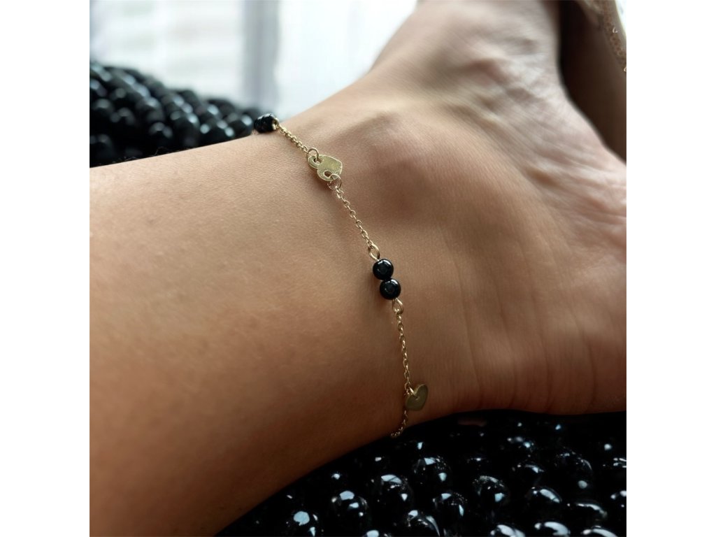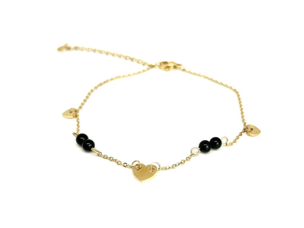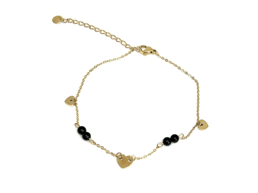 Jemné srdiečka v kombinácií s čiernymi korálkami povyšujú tento anklet na elegantný kúsok.