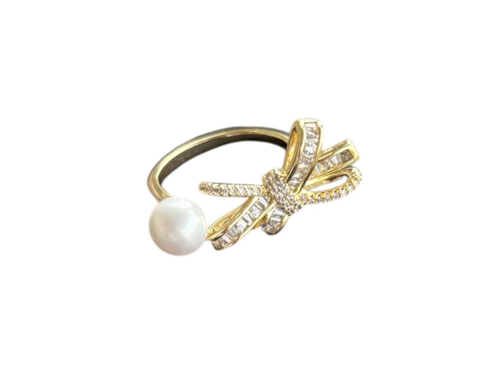 Výrazný kúsok, ktorý v sebe spája perlu a kamienkovú mašličku, dva veľké trendy tejto sezóny. Prsteň nájdeš v dvoch veľkostiach, pre menšie aj väčšie prsty. Každý typ je nastaviteľný, vďaka čomu ho jednoducho prispôsobíš svojej veľkosti.